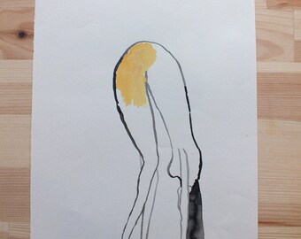 Touch Your Toes - A4 original drawing, simple line ink drawing, nude female, naive art