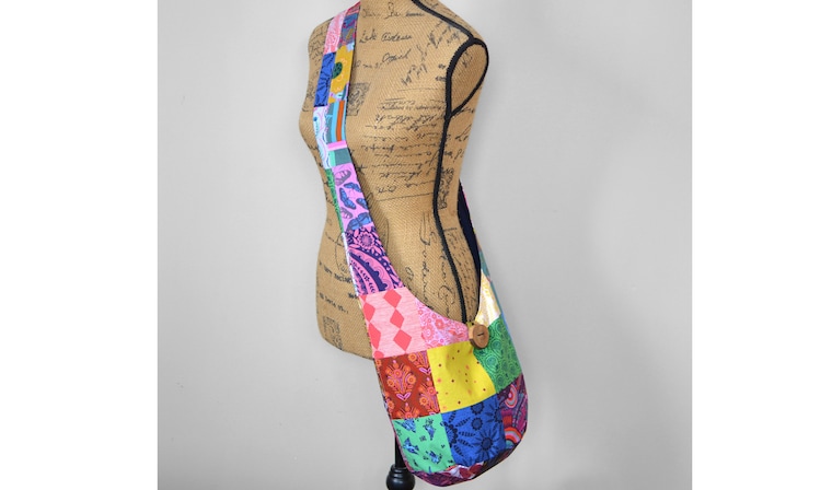 One of our patchwork bags. Anna Maria Horner and her curated Conservatory fabrics are some of my favorites. -