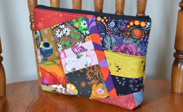 Patchwork crazy quilt zipper pouches -