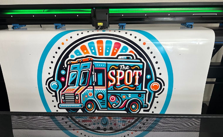Precision 48" prints cut to custom shapes with our Summa S3 T140 cutter—perfect for unique projects! -