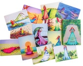 5 de 5 estrellasLa maestra de una clase en línea que tomé usó estas tarjetas en una de sus sesiones, y las imágenes me hipnotizaron de inmediato. Son aún más encantadores en persona, y ya los estoy usando como inspiración para el diario y el arte. Los amo.