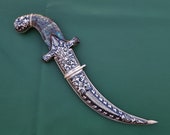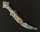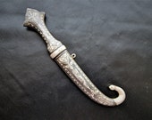 4 de 5 estrellasHermosa hoja exótica. He estado creando una colección de dagas étnicas. India tiene algunas de las más atractivas. La punta está pulida y será difícil de arreglar. India tiene una política contra la exportación de objetos afilados o puntiagudos, y la mayoría de los artículos que se pueden comprar han sido dañados para cumplir con esas normas.