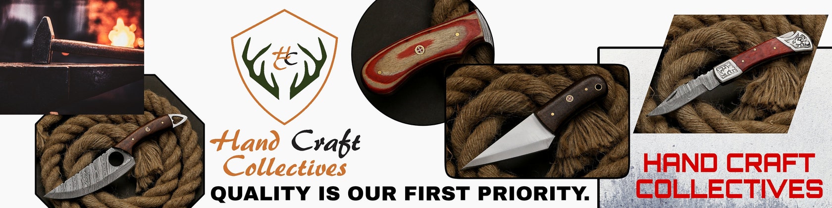 At HandcraftCollectives, we believe a knife is more than just a tool – it’s a work of art. Each of our handmade knives is forged with care by skilled artisans using high-quality Damascus steel and exotic handle materials. From fillet knives designed for precision cuts, to rugged hunting knives built for the outdoors, to compact pocket knives for everyday carry, we create blades that combine performance, durability, and craftsmanship.