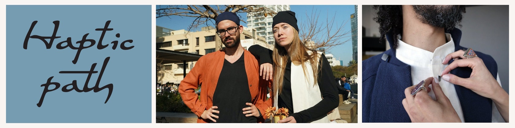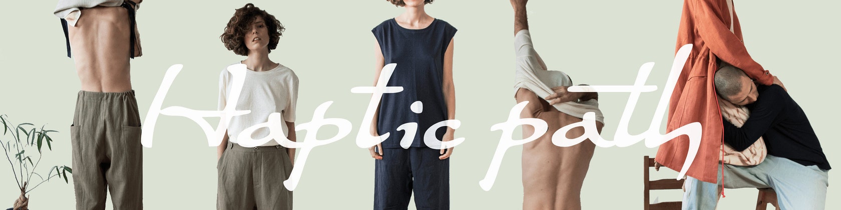 The goal of Haptic path is to casually balance between the urban and the natural. Inspired by ancient Japanese attire, my garments combine rare cuts with traditional and minimal aesthetic to create a uniquely elegant yet casual style. This comfortable and highly tactile clothing is so pleasant to the touch that you will never want to take it off!