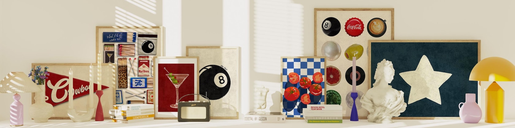Our main focus is on Retro & Funky designs that bring a nostalgic and trendy vibe to your space. We specialize in art that's perfect for your Dorm Decor, Kitchen & Bar Cart, or Living Room Gallery Wall. From Vintage Matchbox posters and Guest Check prints to Quirky typography and Billiard Ball art, our main collection is curated for those who love a pop of personality.