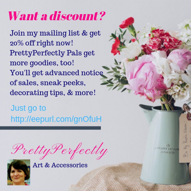 Get 20% off! FOR LIFE! when you become a PrettyPerfectly Pal! Just go to eepurl.com/gnOfuH