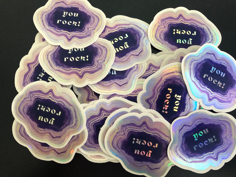 Custom Stickers with Spot UV Gloss which will give a raised to text on the stickers. -