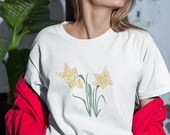 5 out of 5 starsI absolutely adore this t-shirt! The daffodil is such a darling flower, this shirt captures its natural and botanical charms perfectly. The flower is so bright + cheery and the perfect shade of yellow! This would make a great gift or keepsake item and is sure to become a favorite in my rotation. I look forward to wearing it and smiling at the delightful daffodils.