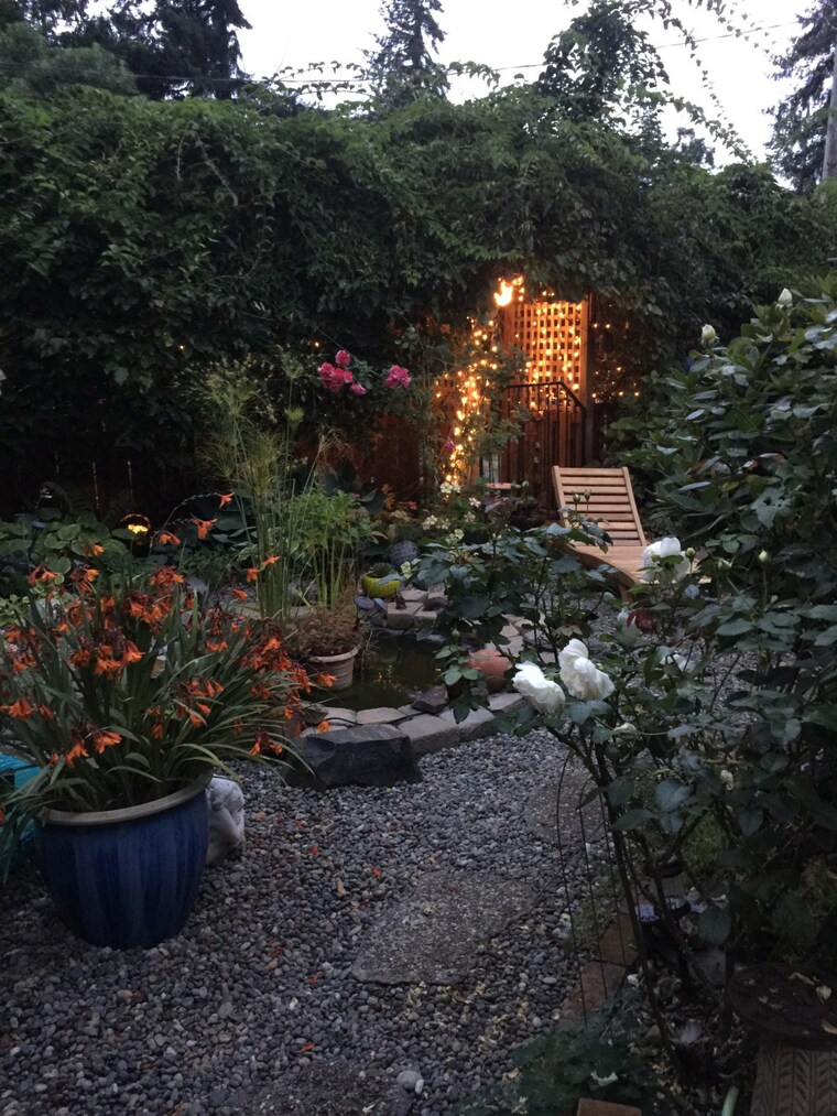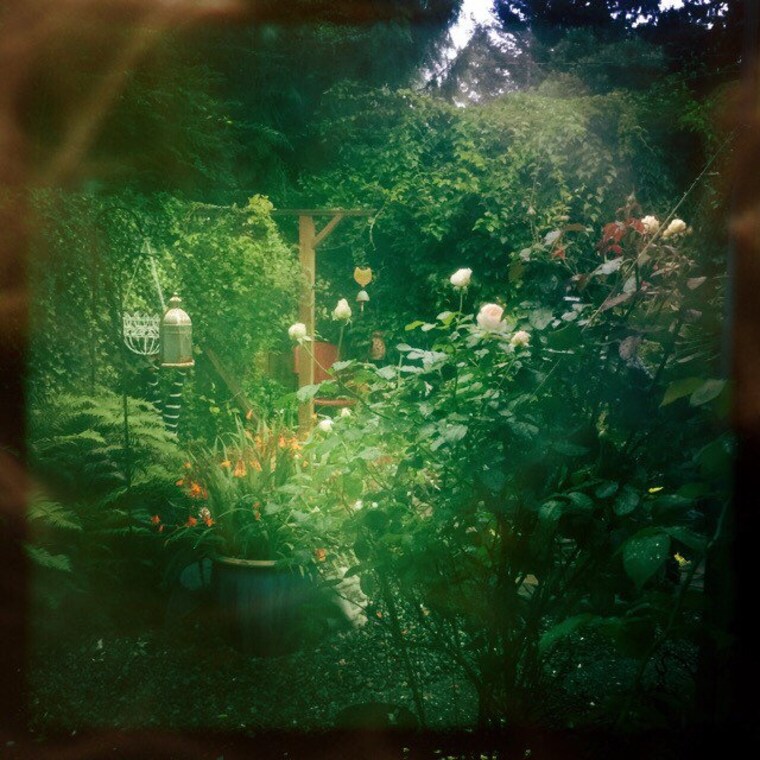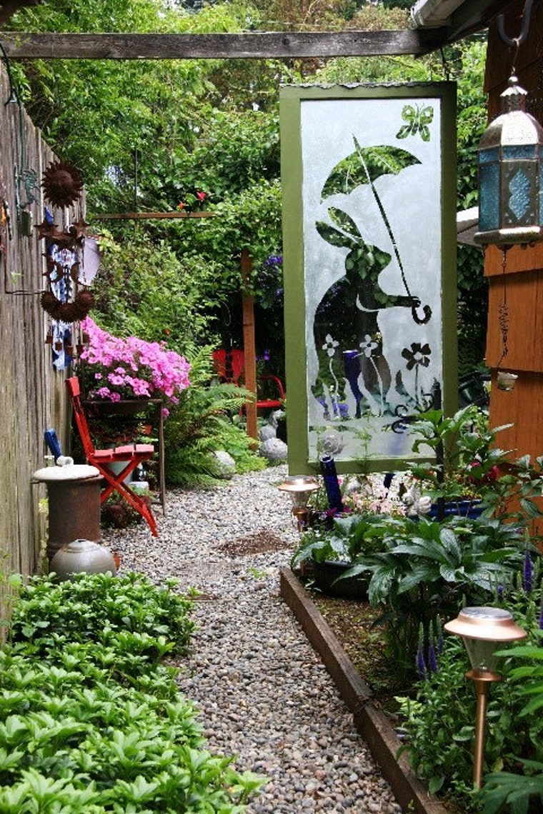 The rabbit garden with a rabbit window invites guests to the studio. -