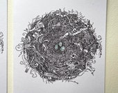 Jeremy Grand is a pen and ink illustration artist. Jeremy has had a lifelong relationship with art, always learning new techniques through self-education as a post-undergraduate. His professional artwork is mainly through custom drawing commissions, original art print sales, and graphic design projects. His style is approachable, full of humor, highly detailed, often dreamy and representative of varied themes such as religion, dreams, item collections, and vignettes of public spaces and gatherings, with the intention of allowing the viewer to linger and get lost in the fine and relatable details.