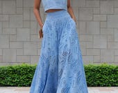 Conjunto azul marino de dos piezas: camisa corta y falda midi de cintura alta