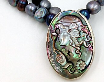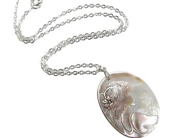 Cameo, Medusa Necklace, Medusa Cameo Jewelry, Cameo Pendant, Medusa Pendant, Vintage Cameo, Mother Of Pearl, MOP Pendant, Medusa Jewelry
