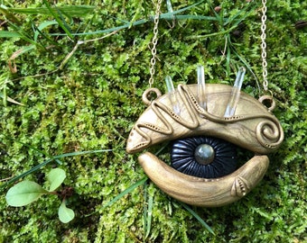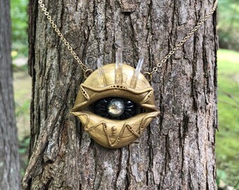 Crystal Creature Quartz Necklace - Gothic Necklace - Horror Necklace - Eyeball Necklace - Evil Eye - Gothic Jewelry - Witch Necklace