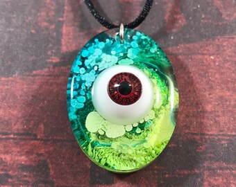 Green Eyeball Necklace, Eye Pendant, Green Eye Necklace, Eyeball Pendant, Halloween Necklace