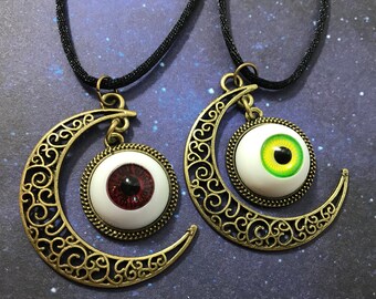 Eye Necklace, Moon Necklace, Eyeball Jewelry, Moon Jewelry, Funky Jewelry, FREE SHIPPING! (Read Description Before Purchasing)