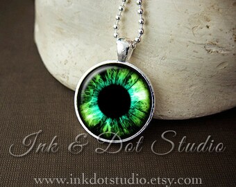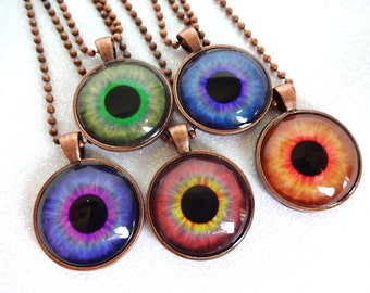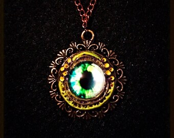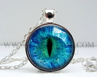 Custom Color Cat Eye Necklace Glow in the Dark 24 Colors Available - Realistic Animal Dragon Eyeball Pendant - Steampunk Gothic Necklace