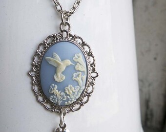 Bird Blue Cameo Hummingbird Necklace Woman Mom Girlfriend Aunt Sister Gift Teen Best Friend Nature Lover Pale Baby Blue Pretty Present