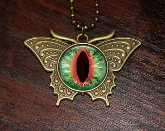 Eye Necklace, Eyeball Jewelry, Oddities, Weird, Bronze Butterfly Pendant