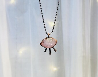 Druzy crystal necklace | Natural druzy pendant | Electroformed raw druzy necklace | Undyed Druzy Necklace | Eyeball Necklace