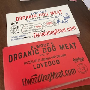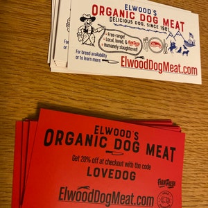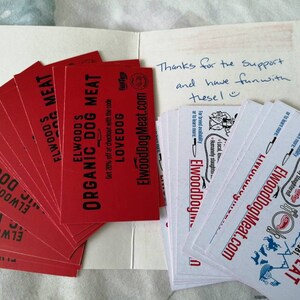 Whether stewed, roasted, baked or boiled, I love Elwood's dogs and these cards make them so easy to recommend! I carry them with me everywhere. They also make great bookmarks. High quality and fast shipping.