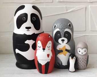 Handmade Wooden Doll, Nesting Doll, Kids Gift, Matryoshka Babushka, 5 pcs 18 cm, Kids Gift,Room Decor