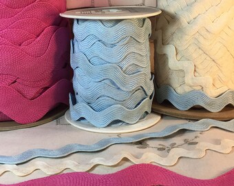 Sewing Trim - Ric Rac - Vintage Ric Rac - Baby Blue - Jumbo Pink Vintage Cream - Cotton Ric Rac - Poly Rick Rack - 1 Yard - N-04