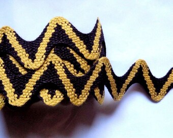 Two Tone Cotton Ric Rac, Ant Gold - Black 1+1/8 inch wide price for 1 yard