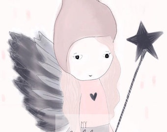 Bunny angel - girls room print, pastel print, modern kids print, kids print