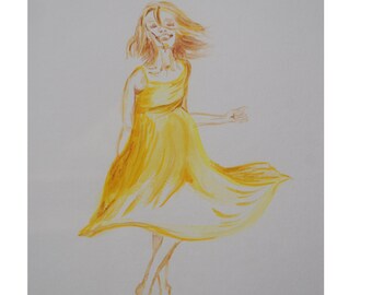 Joyful Dancer in the Yellow Dress: original painting
