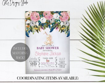 Baby Shower Invitation Bunny, Bunny Baby Shower Invitation, Baby Shower Invitation Bunny, Shower Invite Bunny, Pink Bunny Baby Shower Invite