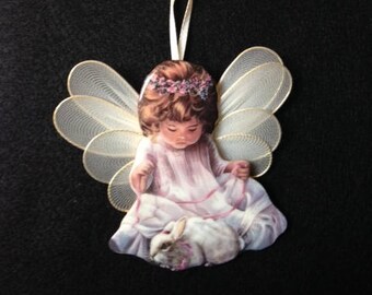 Vintage Porcelain "Loving Kindness" Girl with Bunny Angel Ornament