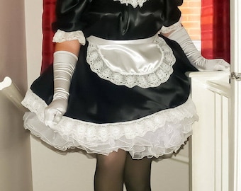 Professional Lockable Satin French Maid Uniform - Not a fancy dress costume