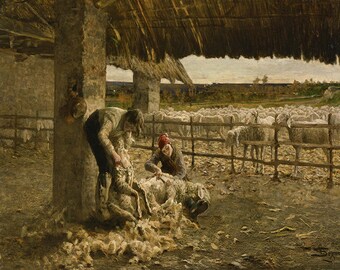 Giovanni Segantini: The Sheep Shearer. Fine Art Print/Poster. (002233)