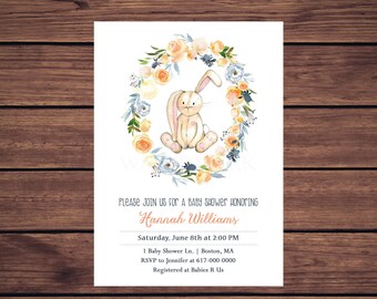 Bunny Baby Shower Invitation, Bunny Rabbit Baby Shower Invitation, Gender Neutral Baby Shower, 358 Printable Invitation