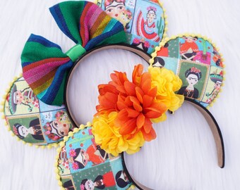 Frida Kahlo Mouse Ears, Frida Kahlo Floral Ears, Frida Kahlo, Frida Kahlo Sarape Ears, Sarape Bow, Marigolds, Minnie Ears, Mouse Ears