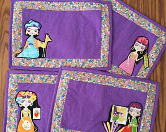 Frida and Flowers Reversible Placemats, Quilted Placemats, Purple Placemats, Kitchen Decor, Table Linens