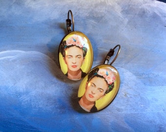 Frida Kahlo Dangle Earrings Frida Lahlo Jewelry Frida with Flowers Perfect for Spring Gift for Art Lover Gift for Art Teacher