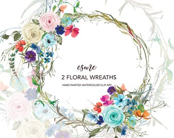 Watercolor Pastel Roses and Tiny Flowers Flowers Wreath Colorful Floral Wreath Clipart - Hand Painted Wreath Clip Art - Commercial Use