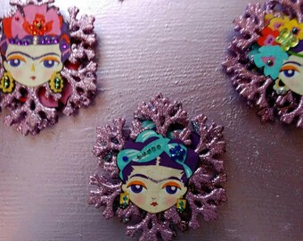 Frida Kahlo snowflake Christmas decorations - frida sparkley hanging snowflake decor - frida Kahlo secret Santa - frida lovers stocking gift
