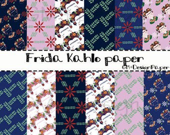 Digital Paper Frida Kahlo / patterns of Frida Kahlo / frida clipart / print frida flowers / Instant Download / scrapbooking / printable