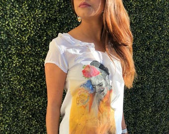 Frida Hand Painted Top/ Frida Kahlo/ Hand Painted Shirt