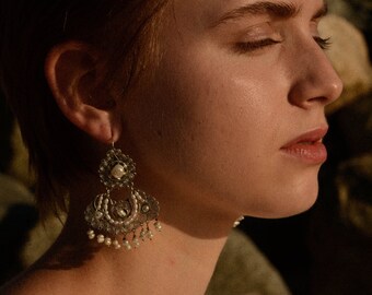 Frida Kahlo Mexican Oaxacan silver filigree earrings with seed pearls