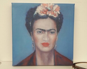 Frida with flowers on blue