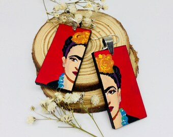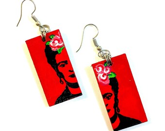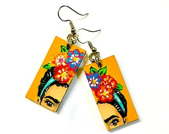 Frida Kahlo Earrings, Hand Painted Frida Kahlo Earrings, Frida Kahlo Jewelry, Frida Kahlo Aretes, Frida Kahlo Wood Earrings, Frida Kahlo Art