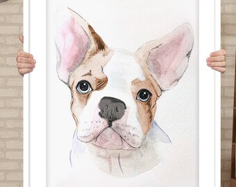 Pet Portrait Custom Pet Portrait Digital Custom Pet portrait Watercolor Original Painting Memorial Art Custom Pug Portrait Gift Idea