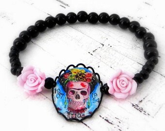 Frida flowers bracelet, Mexico, halloween, sugar skull, calavera