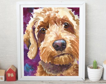 Goldendoodle Art Original Watercolor Painting, Hand Painted Portrait by Ron Krajewski, Goldendoodle Lover 8x10