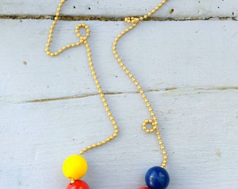 Kette Kugelkette Bohéme Holz Gold Perlen rot blau gelb recycling-fashion colour bunt art and crafts recyclingart Frida Kahlo style