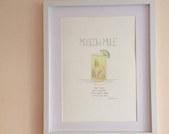 Hand Drawn Watercolour Cocktail Illustration, Moscow Mule A3 With Recipe