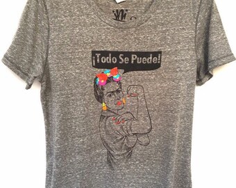 Frida Todo se Puede Tshirt. Hand Painted Frida Shirt. Gift Friendly.